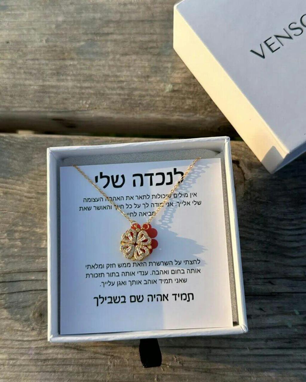 גאולה ב. השרשרת הזו פשוט מושלמת. האריזה, הברכה, והרעיון של ארבעה לבבות שהופכים לתלתן, כל פרט קטן נעשה באהבה.